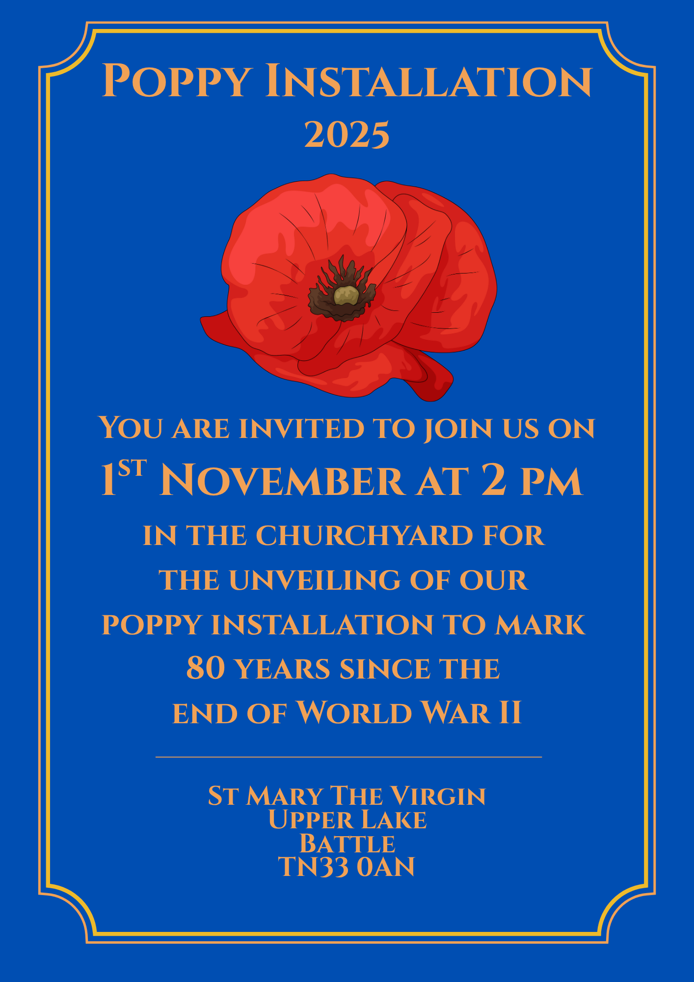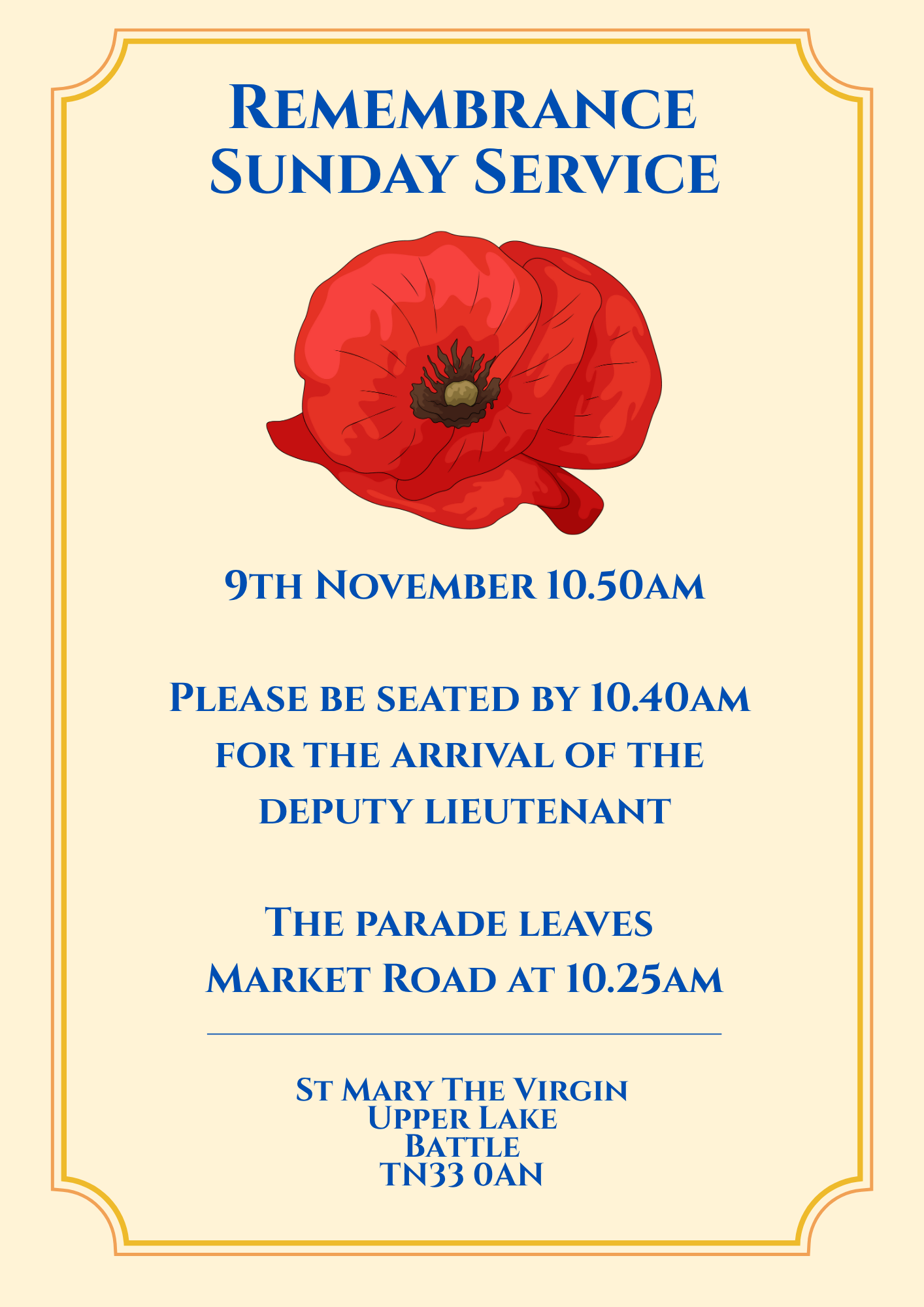 The Dean and churchwarden would like to invite you to attend the Remembrance Sunday Service at St Mary’s Church in Battle on Sunday 9th November at 10.50am. The service will follow the traditional format.